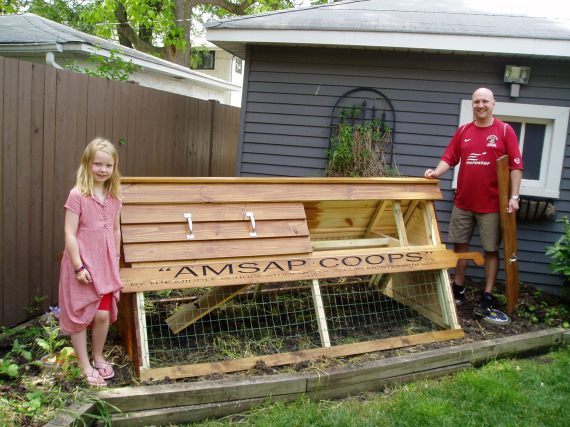Bruce and Ailsa with the lovely a-frame coop made by Alcuin Middle School