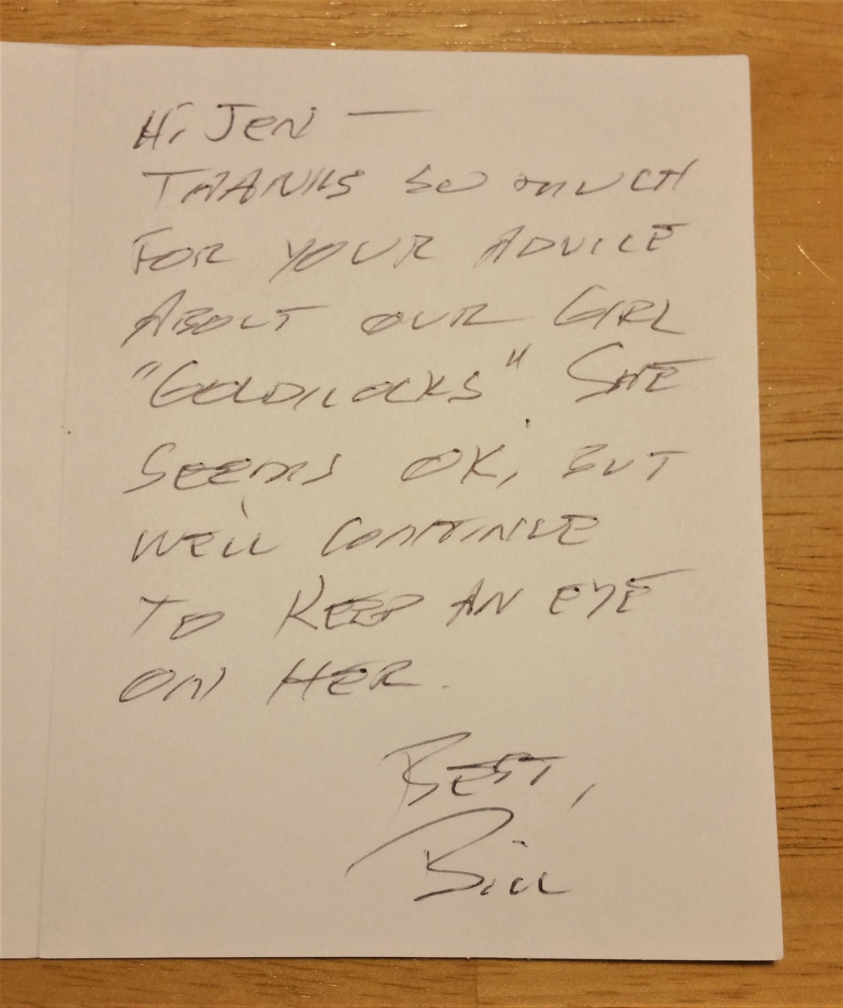 “I just wanted to extend my personal appreciation for all you did for Francine and our family this week. You provided invaluable care, support and strength, and peace of mind, not just to Francine but to our entire family, in a particularly stressful situation.