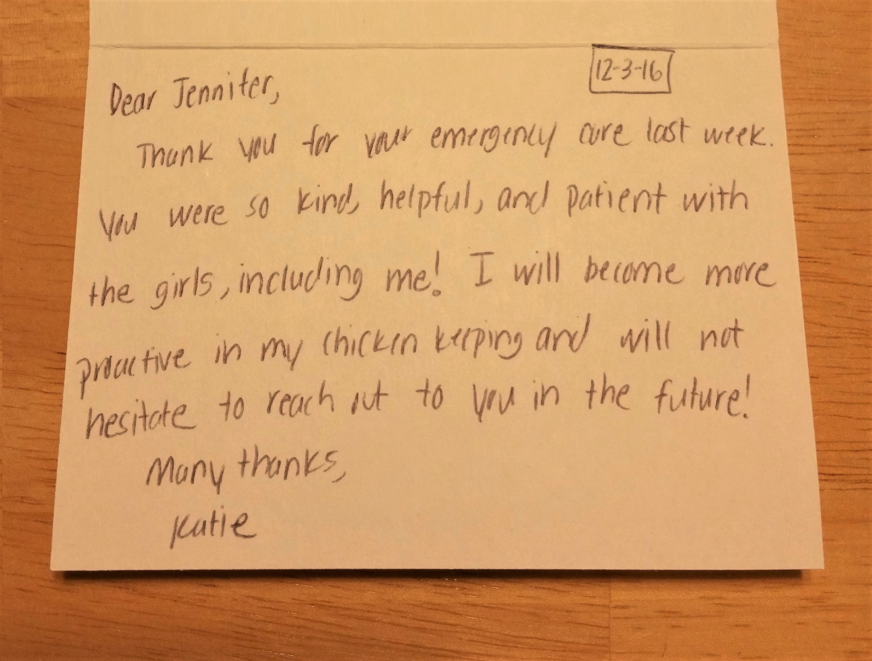 I look forward to reaching out to you in the future and recommending you as I meet other chicken people.