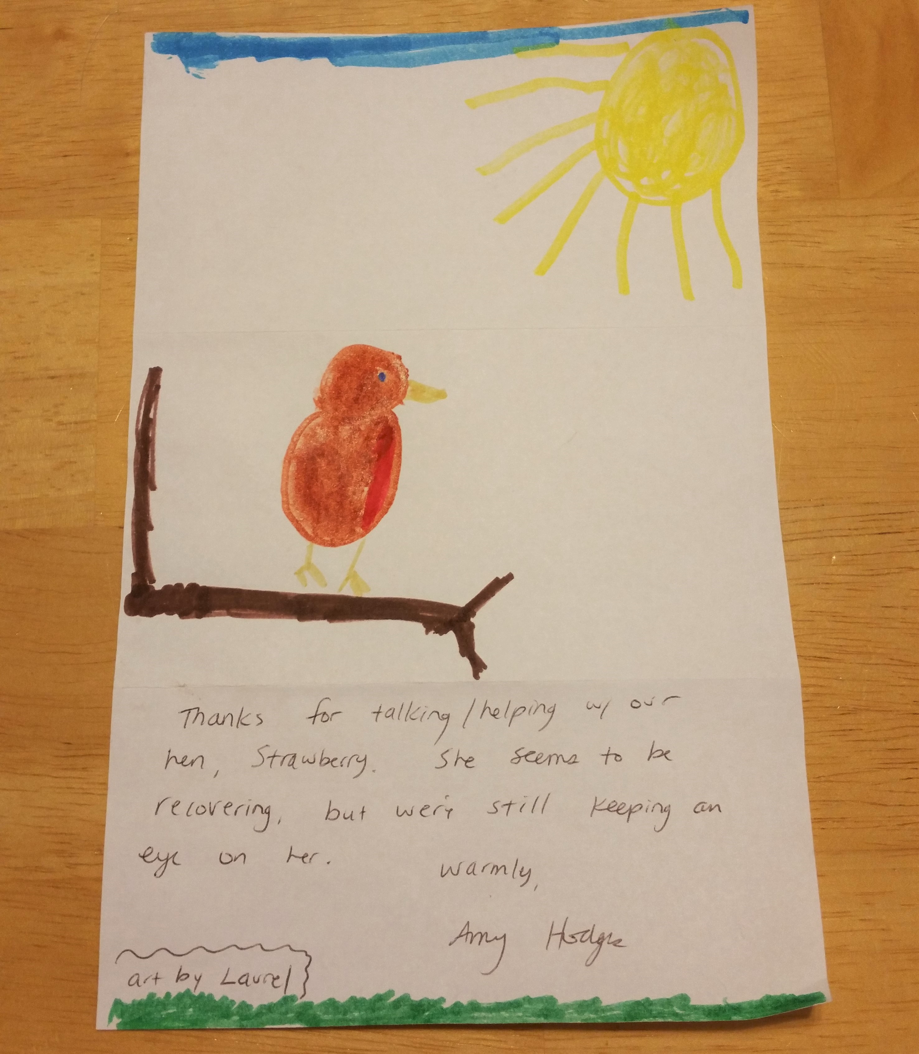 Some clients send me fun drawings of their birds as a “thank you” for my services:
